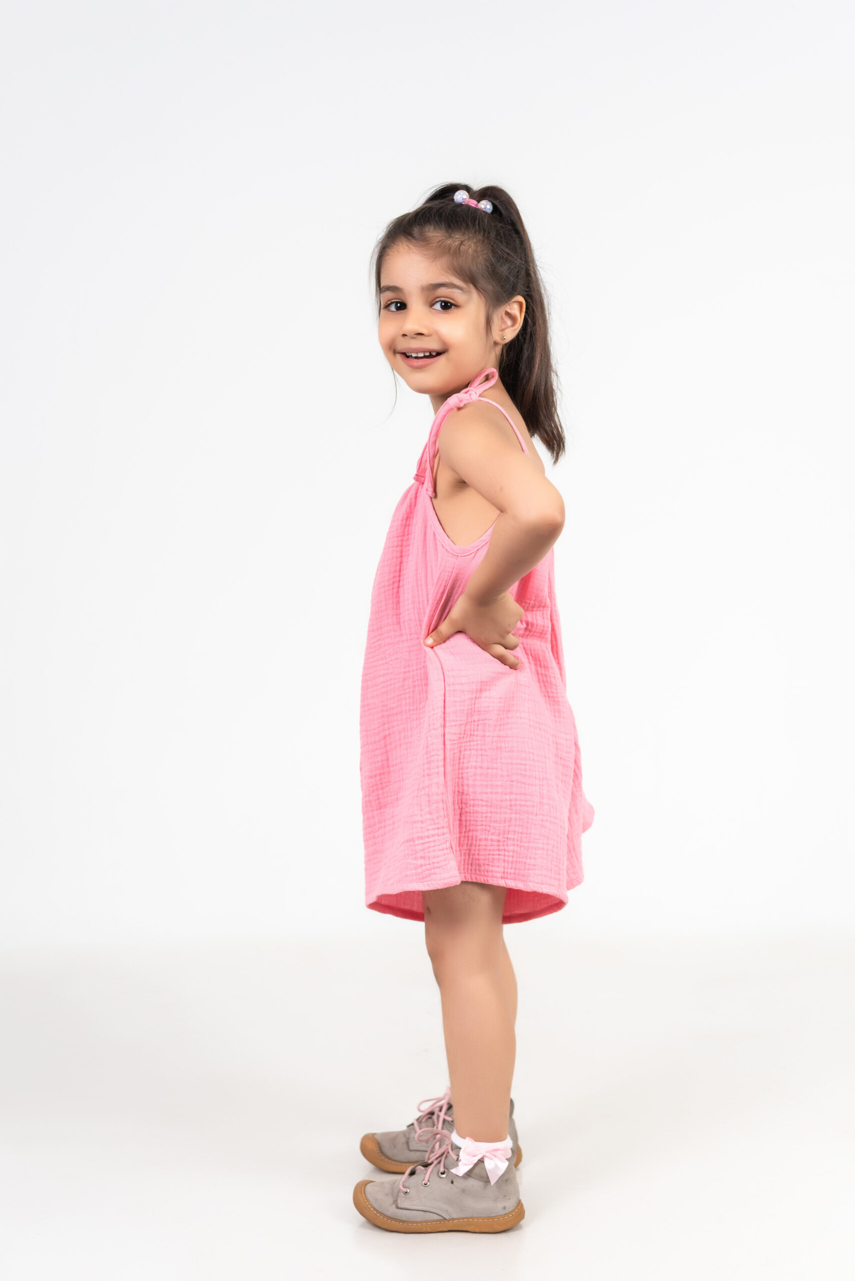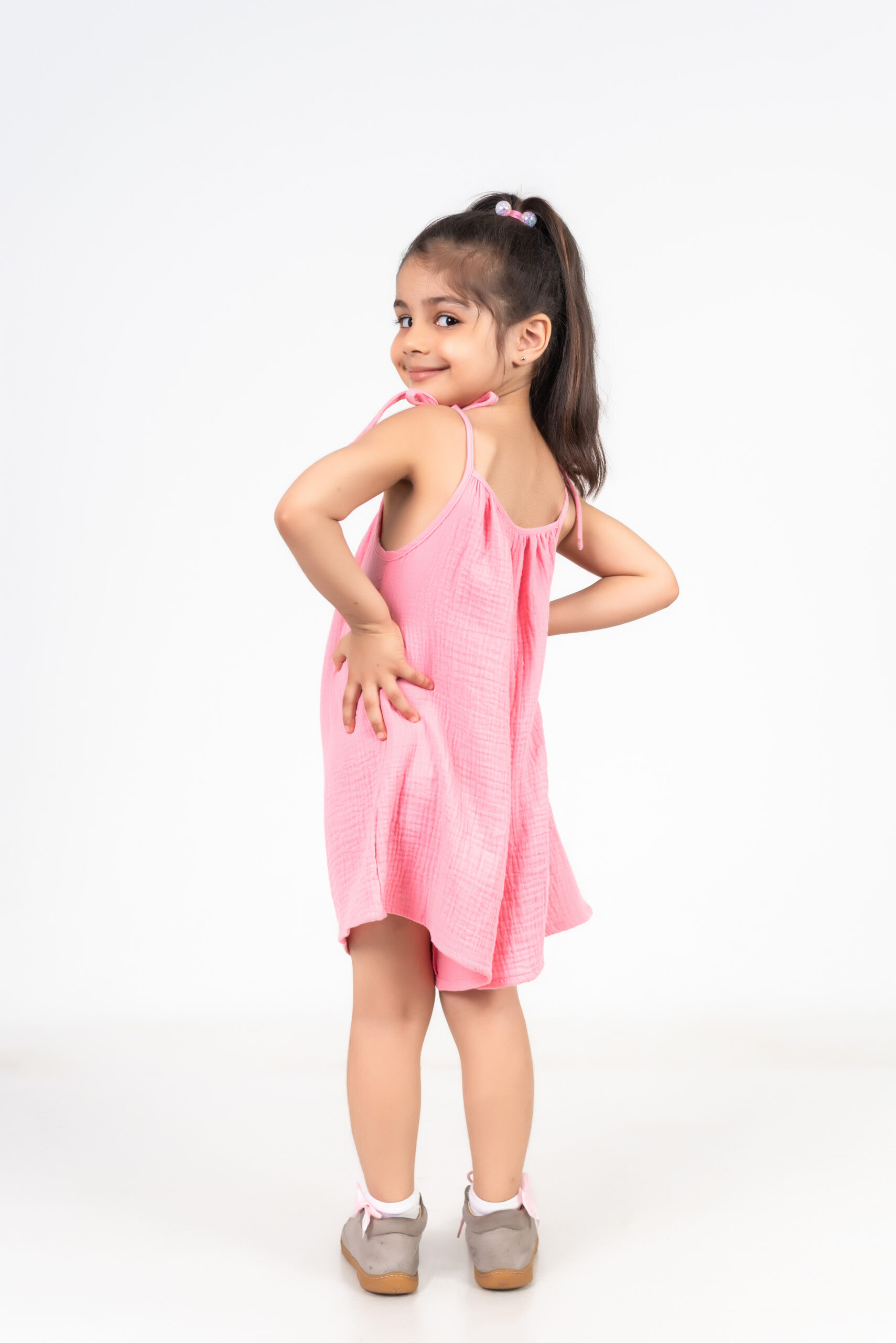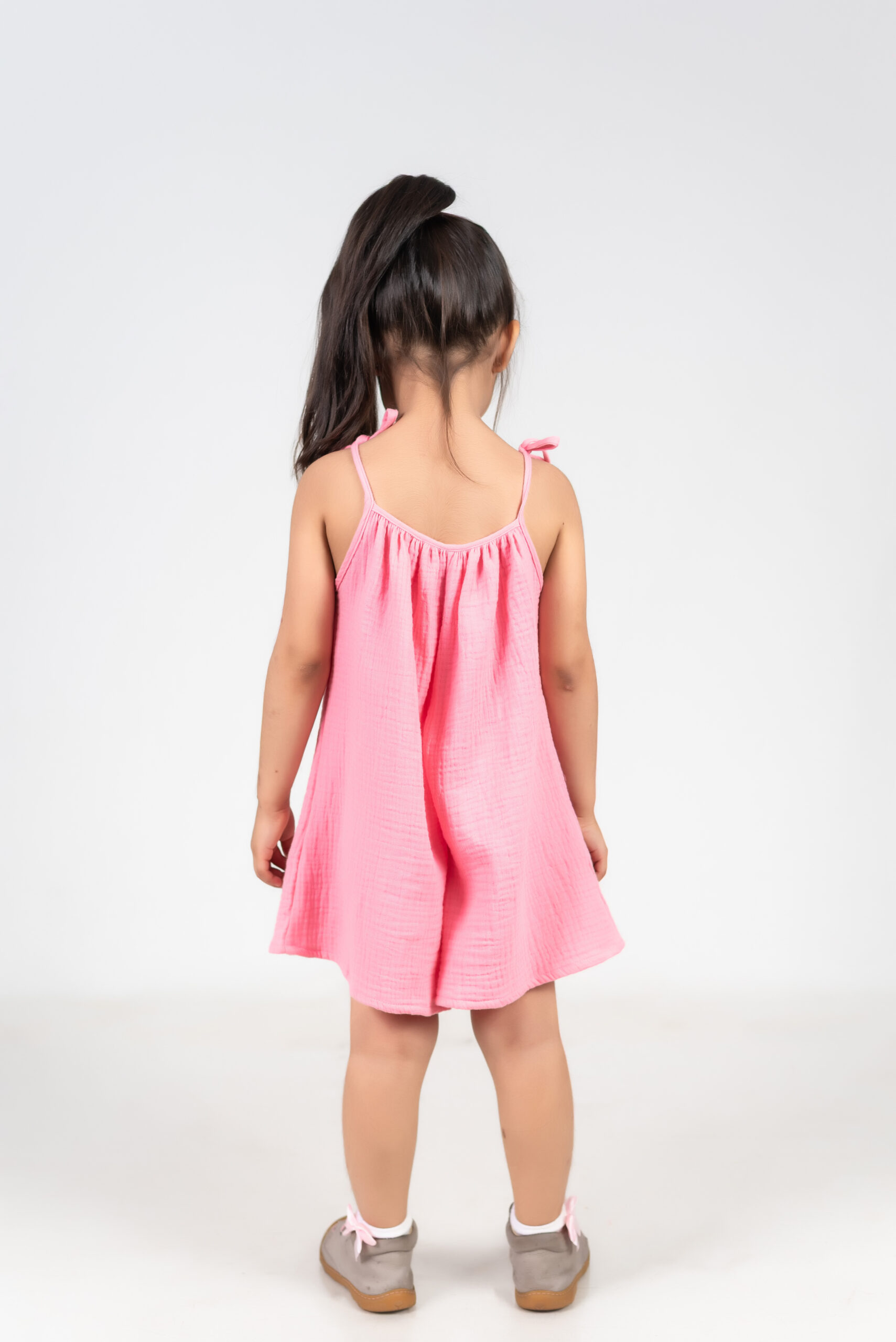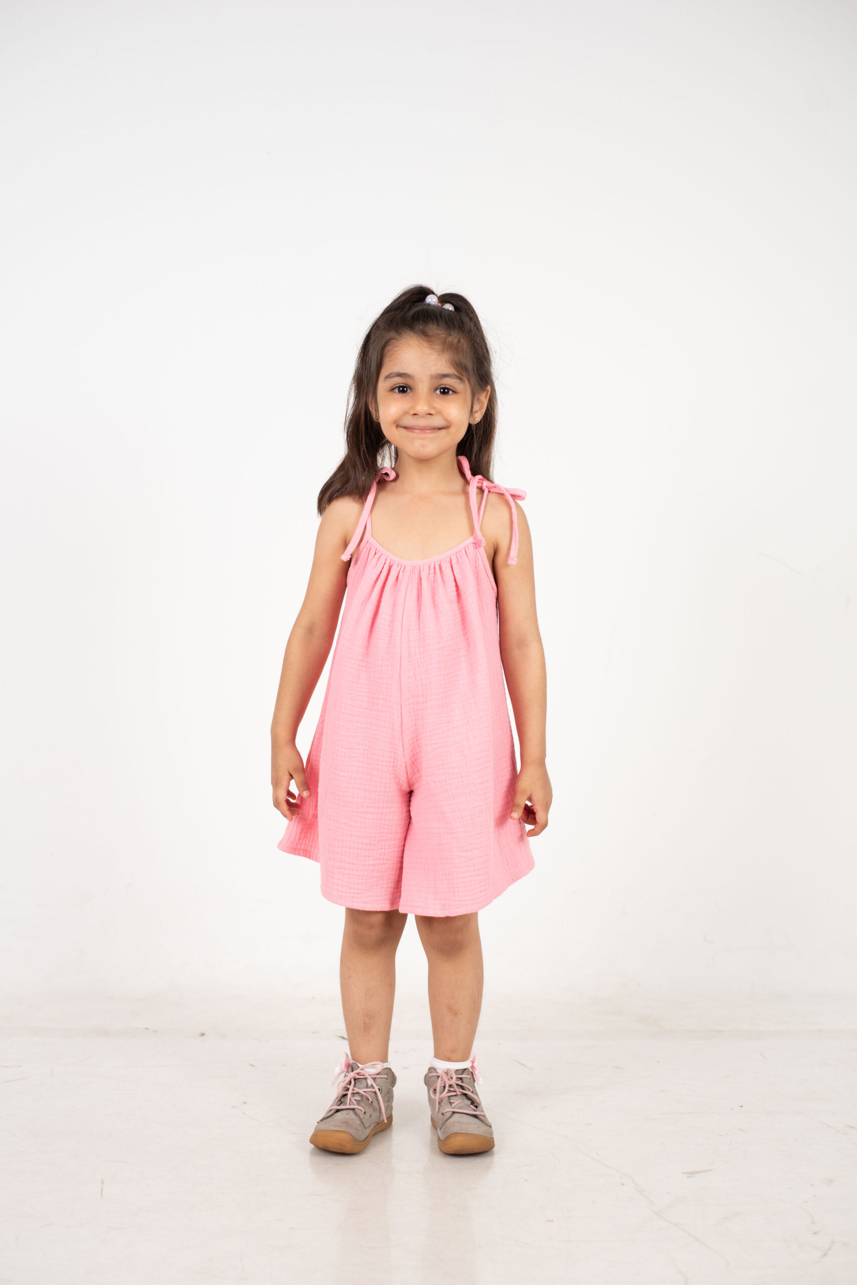 Our Blush Breeze Jumpsuit is crafted from breathable cotton with a soft textured finish, designed to keep your little one comfortable all day long. The delicate shoulder tie straps add an adjustable fit, while the relaxed silhouette allows for easy movement and playful twirls.